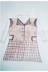 Сарафан с клетчатым воротником красноватого цвета.