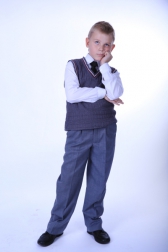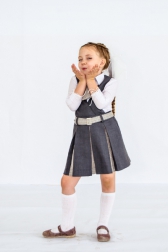 Мы представляем несколько вариантов моделей школьной формы для самых маленьких школьников. Модели выполнены из полушерстяных тканей серого и бордо цветов в сочетании с тканью компаньоном — серой клеткой. При изготовлении костюмов использованы ткани и фурнитура российского производства.